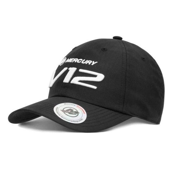 Svart Mercury Cap V12 tiltrekker seg oppmerksomhet med sin enkle design og broderi av høy kvalitet foran.