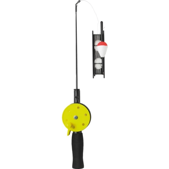 Denne korte fiskestangen av plast og glassfiber gjør det enkelt å fiske fra brygga. Stangen kommer ferdig rigget med krok og sene, klar for agnfiske. Fungerer i både salt- og ferskvann.
