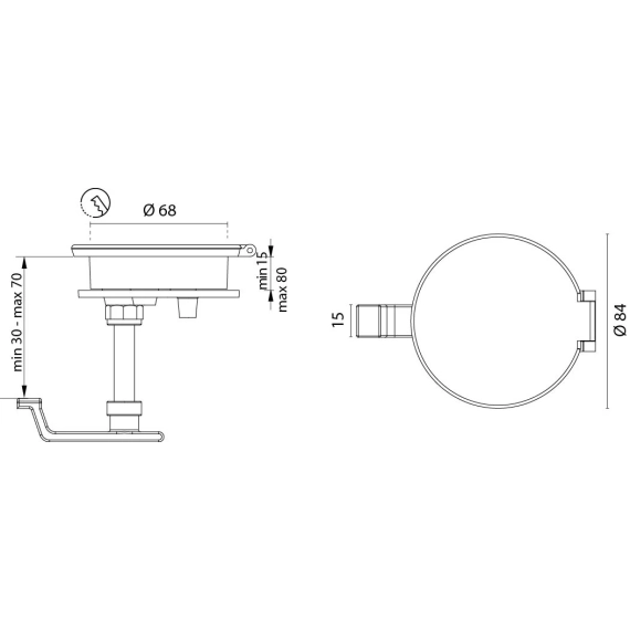 Lukelås for nedfelling i forkrommet messing m/lokk. Justerbar tykkelse (min. 15 mm). Uten lås.
