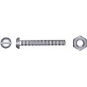 Maskinskrue DIN 84 i syrefast stål med sylinderhode og rett spor. Leveres med mutter DIN 934. Blisterpakket.