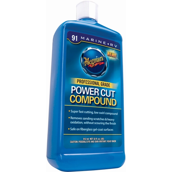 Marine Power Cut Compound fra Meguiar's fjerner swirls og riper i gelcoat. God mot oksidasjon uten å skade overflate og finish.
