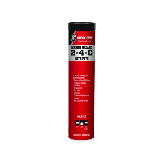 Mercury 2–4-C Marinefett med PTFE/teflon er et ekstremt allsidig litiumbasert NLGI 2-fett av høy kvalitet som ikke brytes ned når det blandes med vann.
