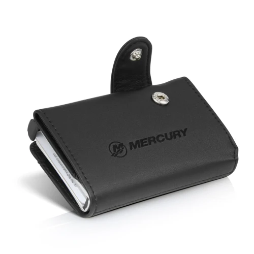 Klassiske kortholder med Mercury-logo på forsiden.