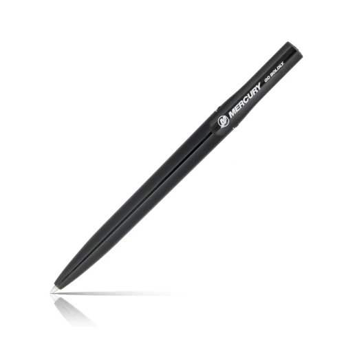 Kulepennen fra Mercury Collection kan dreies og vekker begeistring med klassisk design og praktiske funksjoner. Selve pennen er svart med hvit Mercury-logo, spissen er matt sølvfarget. Pennen skriver blått. rPET-materialet laget av resirkulerte PET-flasker i Europa er egnet for langvarig og bærekraftig reklame.