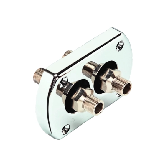 Dobbel gjennomføring for hydraulikkslanger til Mercury utenbordsmotorer. I krom.