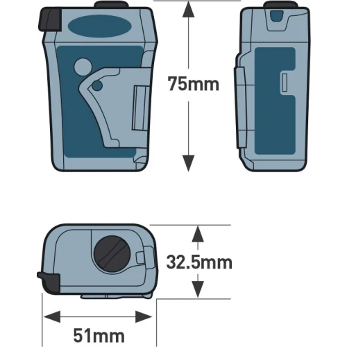 - Mål: 77 x 51 x 32,5 mm