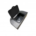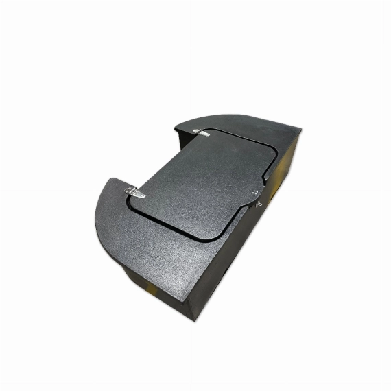 Låsbar oppbevaringskasse i solid svart polyethylene.
