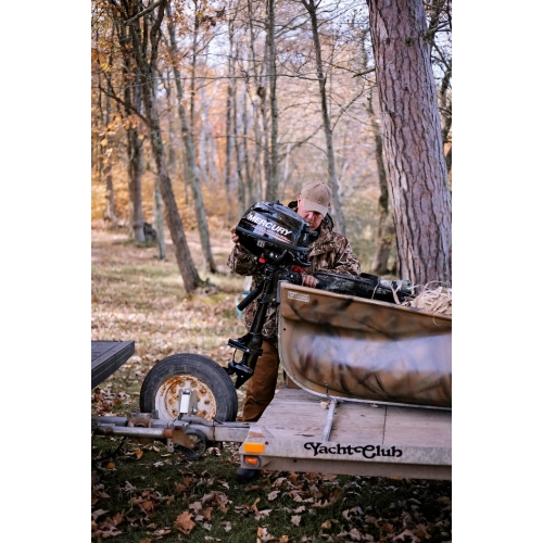 Opplev kvikk manøvrering og en ytelse som er langt bedre enn det størrelsen skulle tilsi. Undervannsventiler for stille drift. Triminnstilling med flere posisjoner gjør det tryggere å ferdes på grunt vann. Eksosen går gjennom propellen på alle Mercury® FourStroke-motorer 4/5/6 HK og ut under vann for stille drift. Automatisk dekompresjon fjerner kompresjonen i sylinderen slik at kraften som må til for å starte motoren, blir mindre.