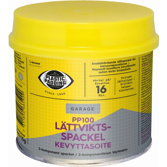 Hurtigherdende lettvektsparkel. PP100 gir en meget tett ytre finish og er derfor meget godt egnet for lakkeringsarbeid.Egenskaper: