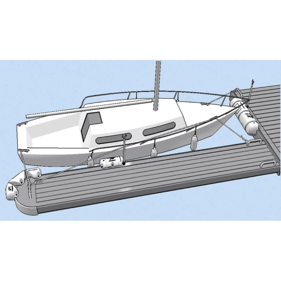 Monteres på framkanten av brygga med skruer eller festebånd.