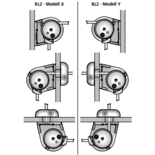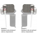 De to variantene "babord/X" og "styrbord/Y" lar deg velge hvilken side kabelaret (taurullen) skal peke mot. På "babord/X" peker det mot babord, mens på "styrbord/Y" peker det mot styrbord. Se bildene for forklaring.