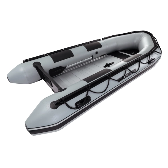 Leveres komplett med årer, kraftige håndtak på pontongene, aluminiumsdørk med kraftige profiler, forsterkede pontonger, syrefaste D-ringer utvendig, Katamarankjøler (kun 470 HD XS), kraftige rekkeliner, pumpe, rep.sett, m.m.