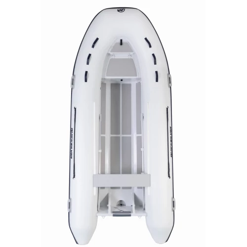 Dobbeltbunn aluminiums RIB med justerbar tofte. Hvit modell.