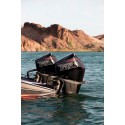 En forsterket transomplate, kraftige rustfrie stålveiledningsplater og stivere motormonteringer er tilpasset for å stabilisere motoren og forbedre håndteringen ved høy hastighet. Syv monteringshull gir mulighet for tre ekstra tommer med vertikal justering.
