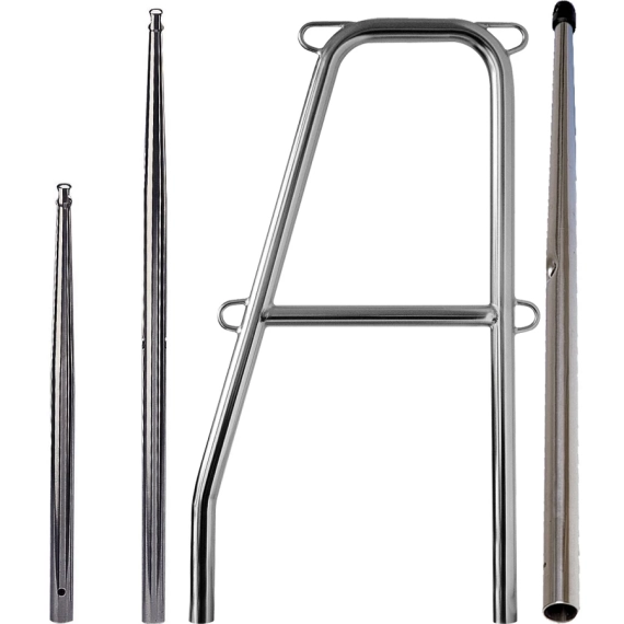Rekkestøtter i syrefast stål for seil- og motorbåter.