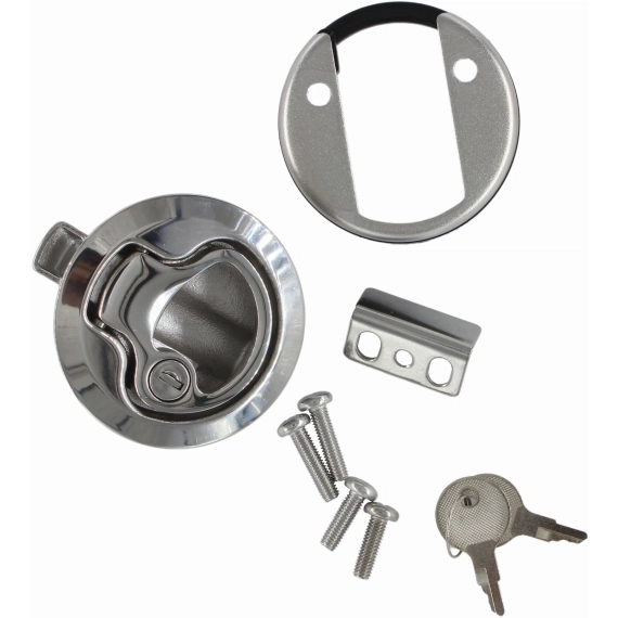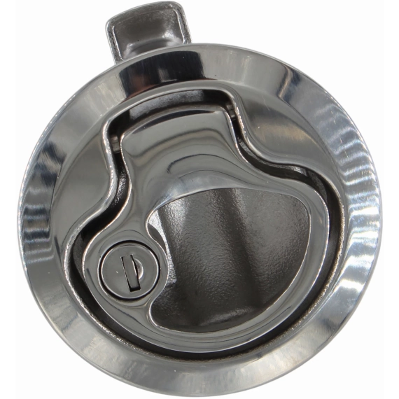 Lekker rund lukelås i blankpolert syrefast stål. Låsen er fjærbelastet, og lukker automatisk.