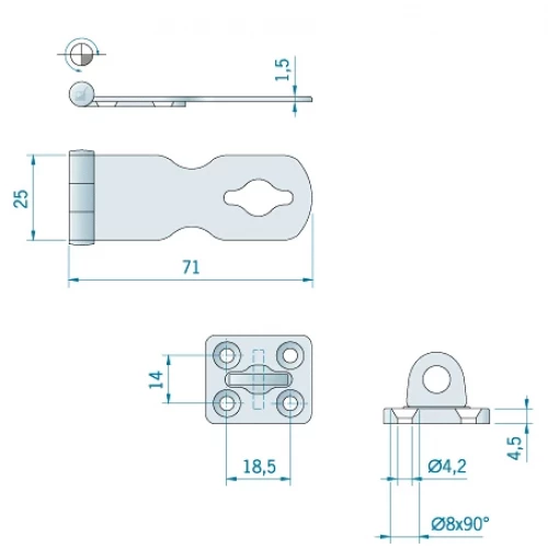 Roca Rustfri Hengelåsbeslag 71x24 mm