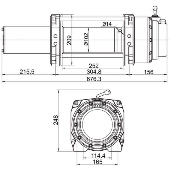 Motoren kan kjøres i begge retninger, og trommelen kan frikobles. Vinsjen leveres med kablet fjernkontroll. Trådløs fjernkontroll finnes som tilbehør.