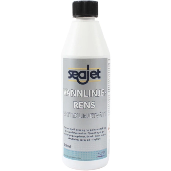 Seajet Vannlinjerens er et saltsyrebasert rensemiddel som fjerner gulningen som lett oppstår over vannlinjen.
