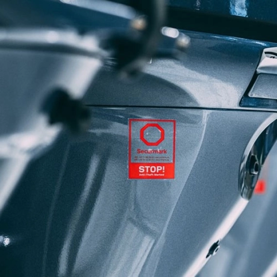 Effektiv tyverisikring fra Securmark. 2500 unike ID-micromerker blir sprayet på motoren.