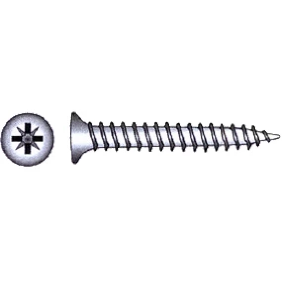 Sponplateskrue DIN 1008 i syrefast stål med 5 mm senkehode og pozidrivespor.