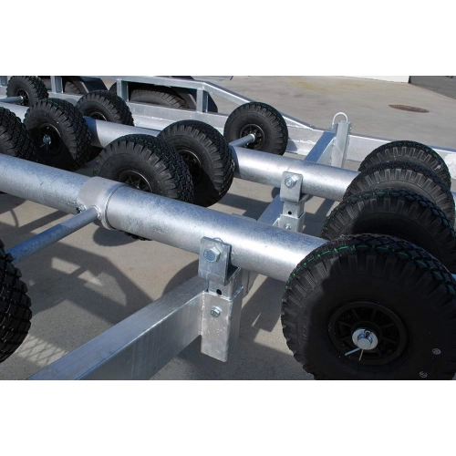 Svela E-type båthengere har patentert luftrulle-system som automatisk fordeler vekten av båten på mange luftfylte hjul.