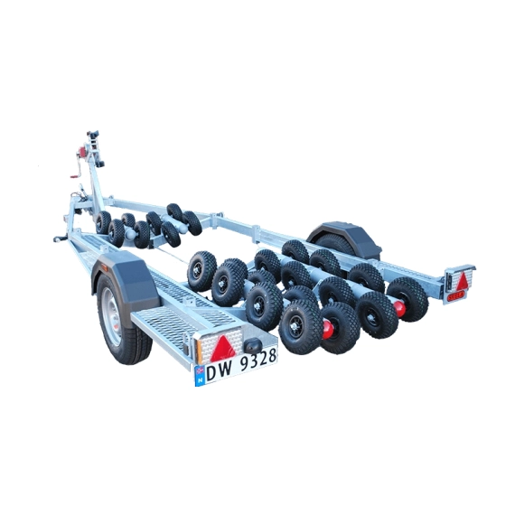 Svela E-type båthengere har patentert luftrulle-system som automatisk fordeler vekten av båten på mange luftfylte hjul.