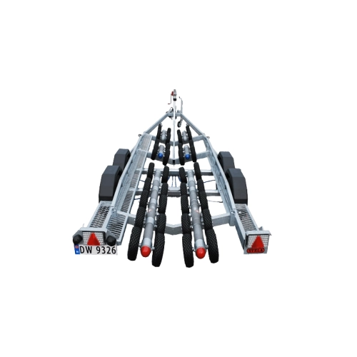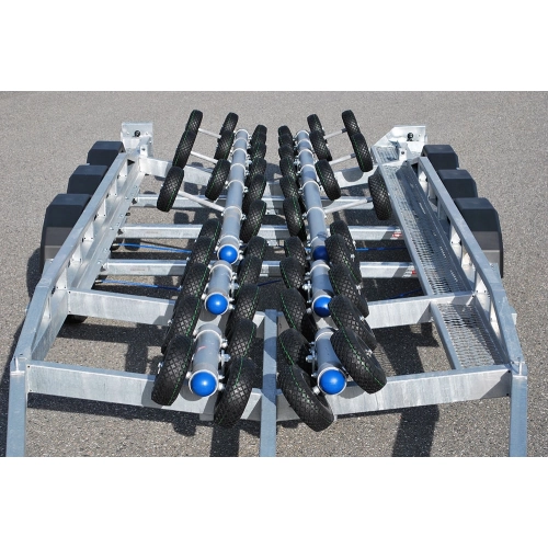 Svela E-type båthengere har patentert luftrulle-system som automatisk fordeler vekten av båten på mange luftfylte hjul.