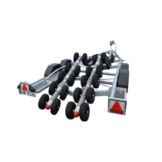 Svela E-type båthengere har patentert luftrulle-system som automatisk fordeler vekten av båten på mange luftfylte hjul.