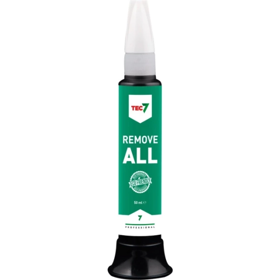 Remove All fra Tec7 er et miljøvennlig rengjøringsmiddel som løser opp masse slik at den enkelt kan skrapes vekk.