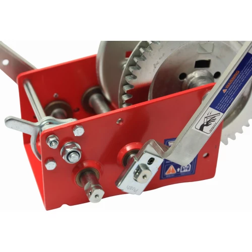 Rock RGW2500C-14 er en kraftig vinsj med ekstra god brukervennlighet. De to girene sørger for at vi sveiver lett i alle situasjoner. Du velger gir etter hvor du plasserer vinsjhendelen. Hendelen kan raskt flyttes uten bruk av verktøy. Dette gjør det mulig å bruke to forskjellige utvekslinger underveis i et opptrekk.Vinsjen har manuell brems som kan blokkere i begge retninger, og settes i nøytral frislippsposisjon. I tillegg til blokkeringsbremsen har den en egen bremsehendel for reduksjon av farten. Dette er spesielt praktisk når du skal sette ut tyngre båter på bratte ramper.