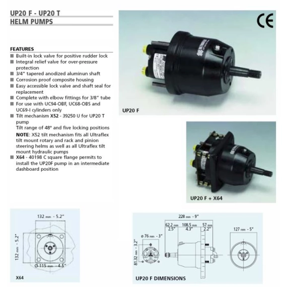 Rattpumpe til Ultraflex hydraulisk styring for frontmontering. Leveres i forskjellige utgaver.