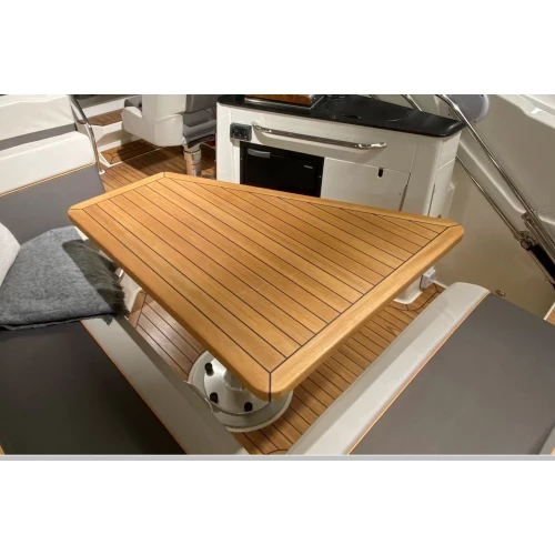 Massivt teakbord med vekt på 11 kg, solid og robust. Spesialdesignet for Uttern D77 modeller.