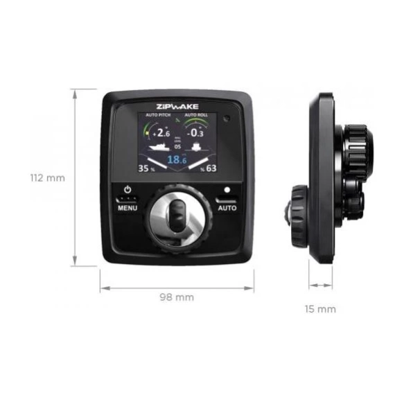 Zipwake er et nytt helautomatisk trimkontrollsystem som gir deg full kontroll over din båt både på kjøreegenskaper og drivstofføkonomi. Det avanserte styresystemet minsker effektivt bølgemotstanden, båten går raskere i plan, gir betydelig jevnere kjøring, og betraktelig lavere drivstoff-forbruk. Kontrollpanelet har både gps, gyro og akselerometer, og dette muliggjør helautomatisk trimkontroll. Opplev forskjellen med et dynamisk interceptorteknologi på din båt!